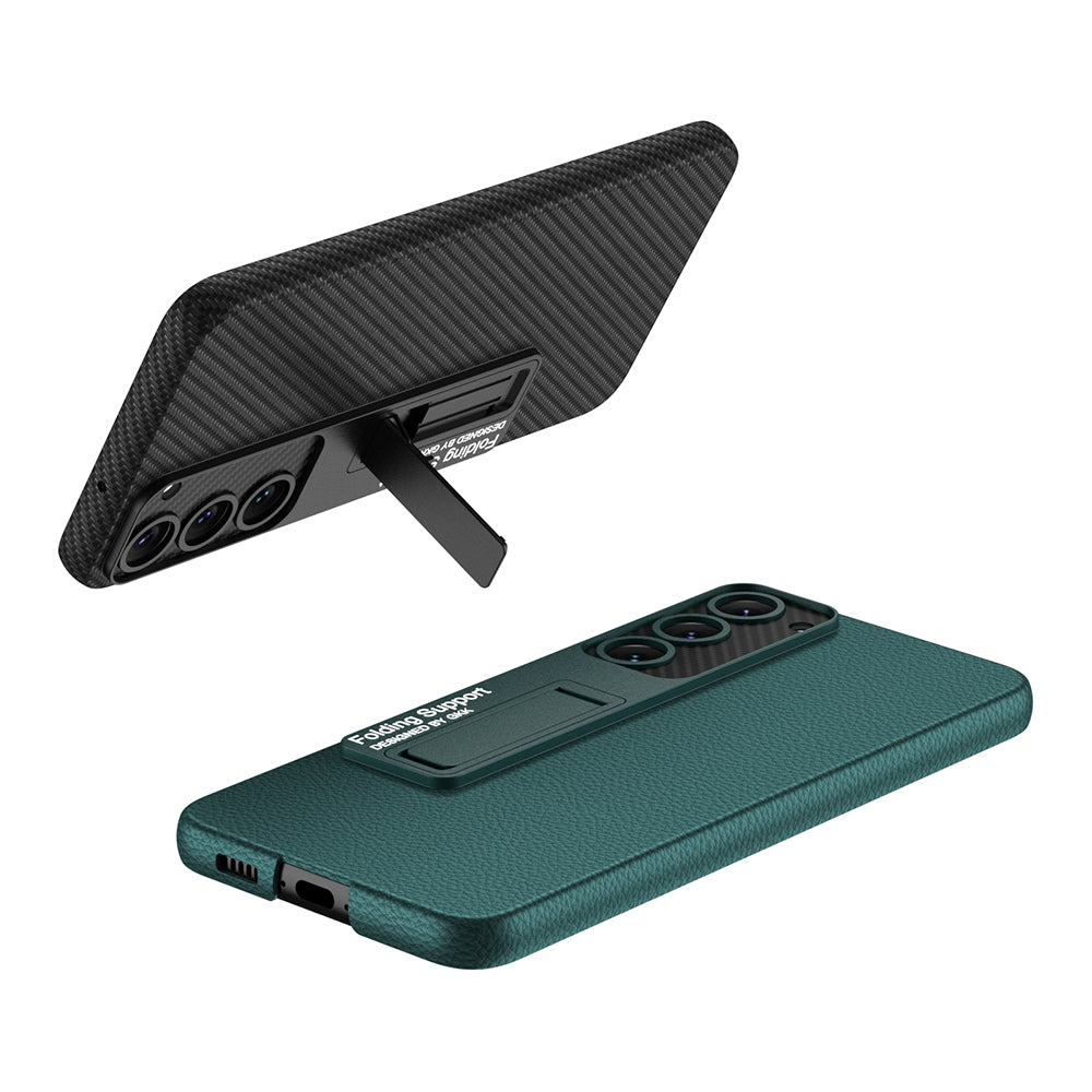 Galaxy S23 Kılıf Zore Kıpta Standlı Kapak Siyah Litchi
