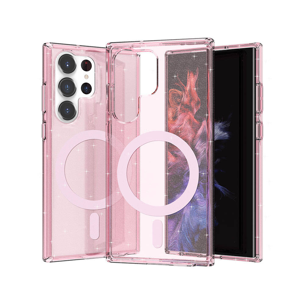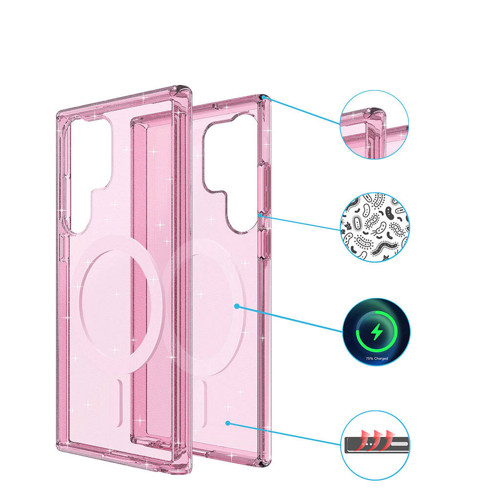 Galaxy S23 Ultra Kılıf M-safe Şarj Özellikli Parlayan Simli Saydam Renkli Zore Allstar Kapak Pembe
