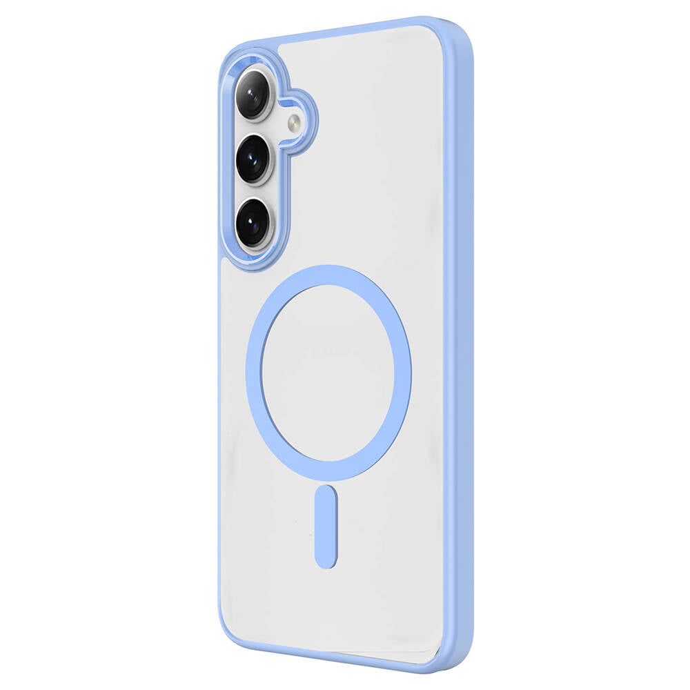 Galaxy S24 Kılıf M-safe Şarj Özellikli Zore Krom M-safe Silikon Kapak Mavi