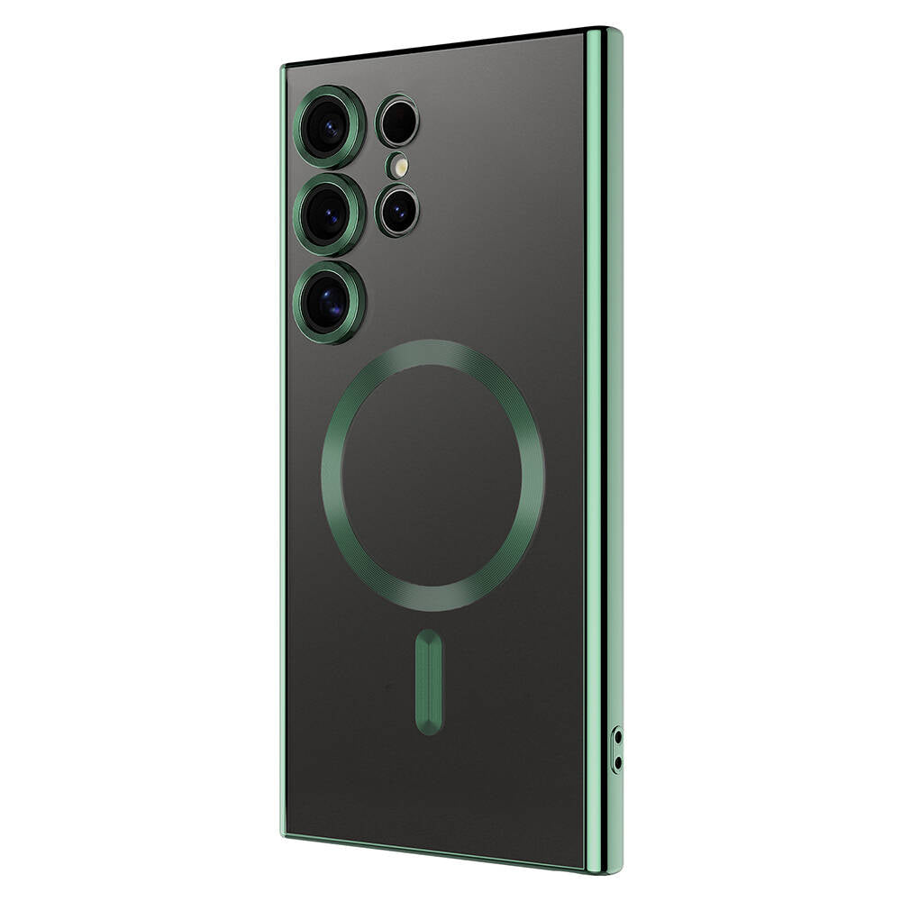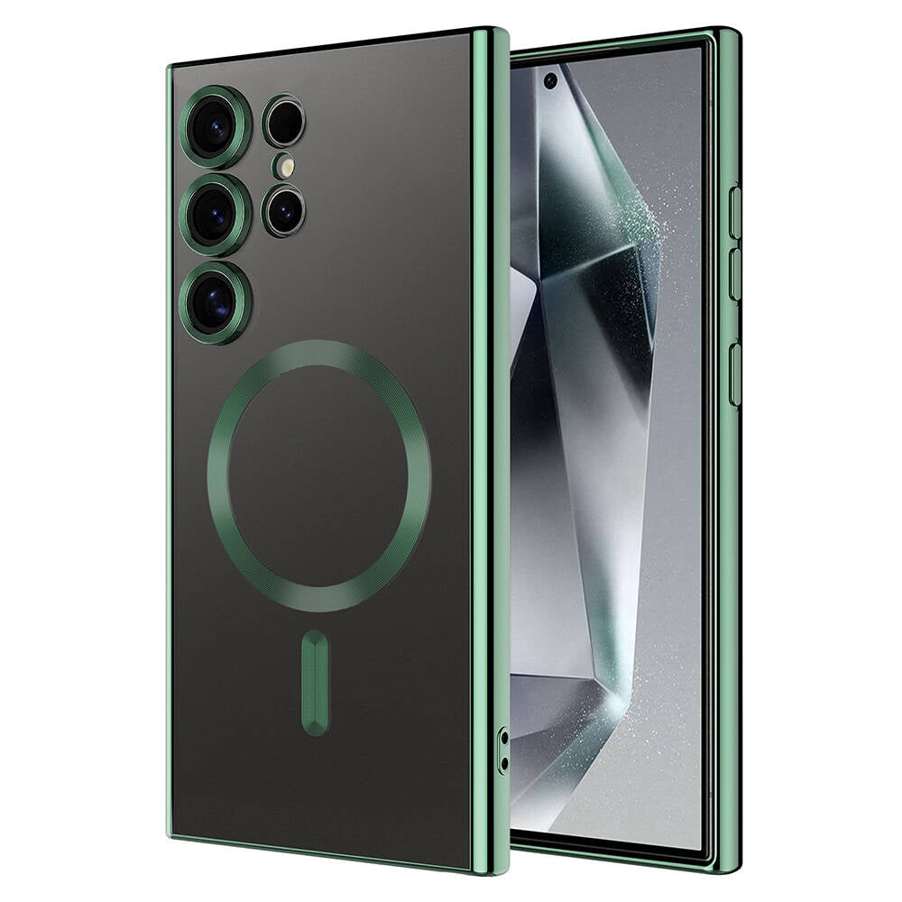 Galaxy S24 Ultra Kılıf Kamera Korumalı M-safe Wireless Şarj Özellikli Zore Demre Kapak Koyu Yeşil