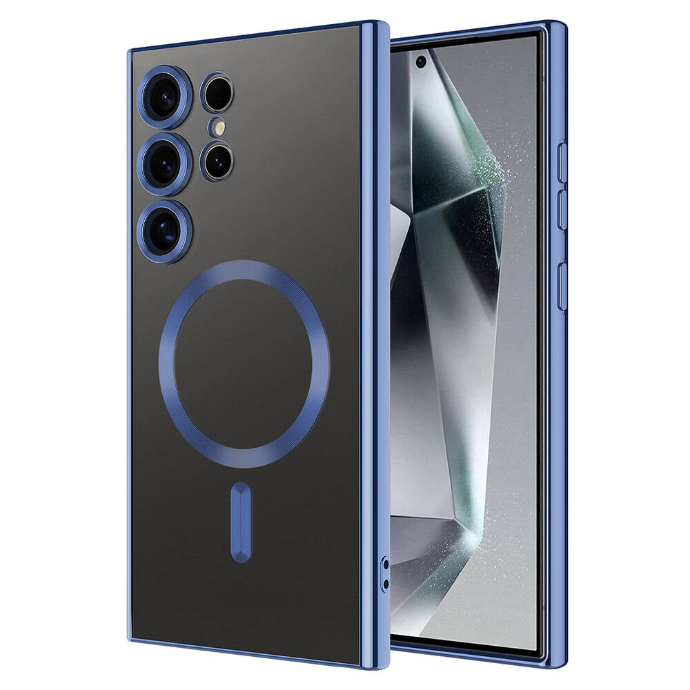 Galaxy S24 Ultra Kılıf Kamera Korumalı M-safe Wireless Şarj Özellikli Zore Demre Kapak Sierra Mavi