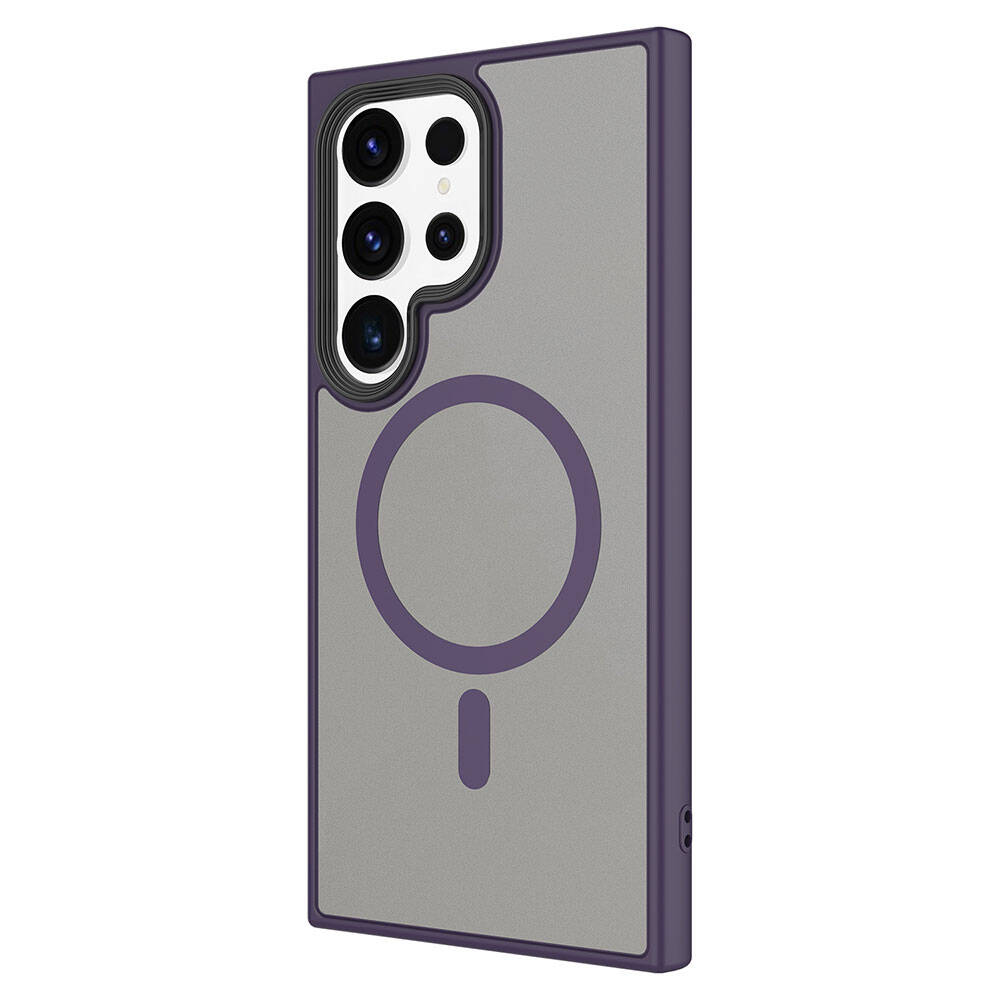 Galaxy S24 Ultra Kılıf Sert PC Arka Yüzey Wireless Şarj Özellikli Zore Flet M-safe Kapak Lacivert