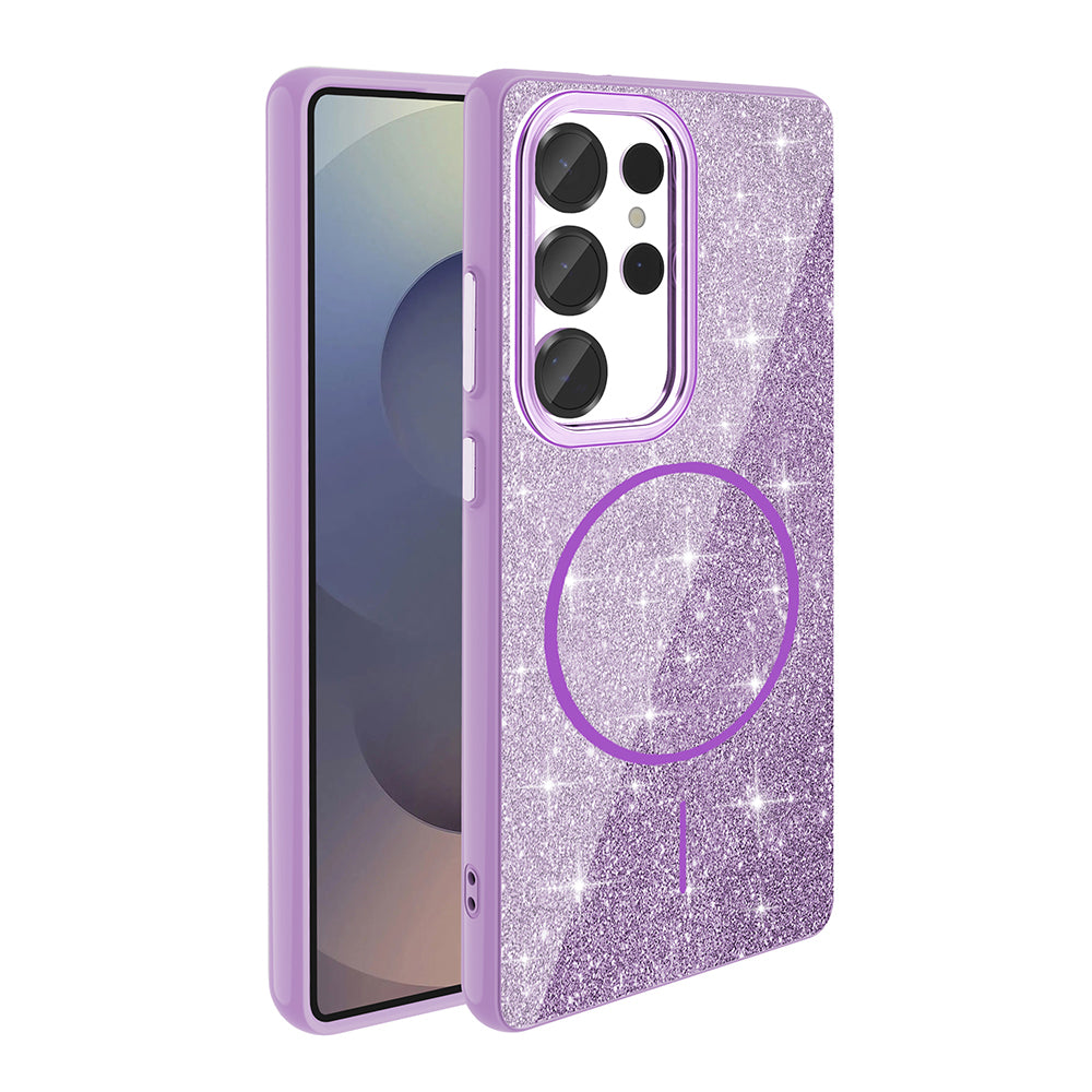 Galaxy S25 Ultra Kılıf M-safe Şarj Özellikli Parlayan Simli Zore Okso Kapak Siyah