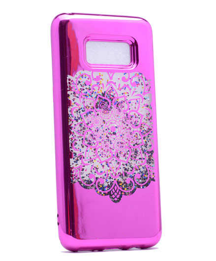 Galaxy S8 Kılıf Zore Lazer Çiçekli Sıvılı Silikon Pembe Koyu