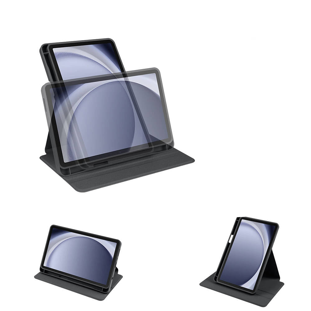 Galaxy Tab A9 Kılıf Zore Termik Kalem Bölmeli Dönebilen Standlı Kılıf Gri
