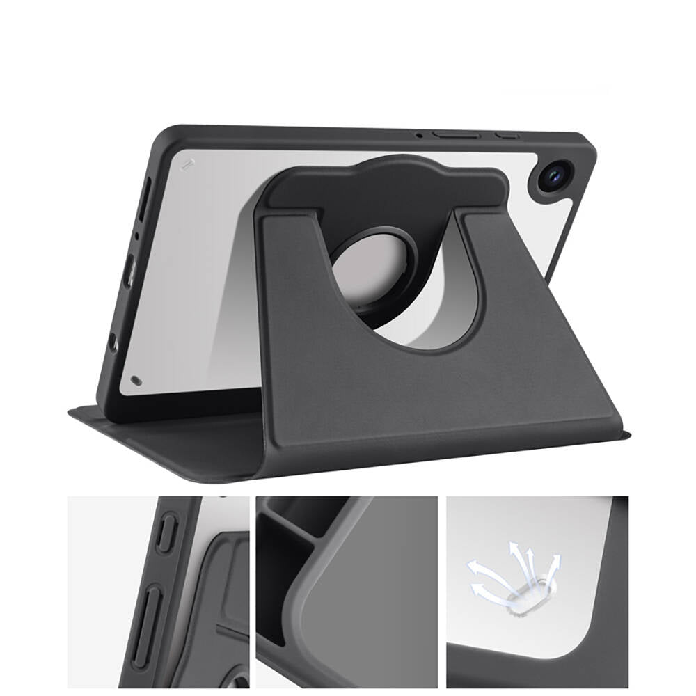 Galaxy Tab A9 Plus Kılıf Zore Termik Kalem Bölmeli Dönebilen Standlı Kılıf Siyah