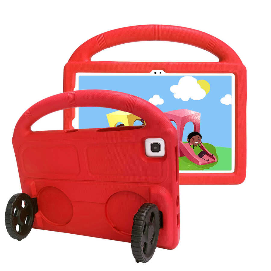 Galaxy Tab S6 Lite P610 Zore Wheel Car Tekerlek Standlı Tablet Eva Silikon Kılıf Pembe Koyu