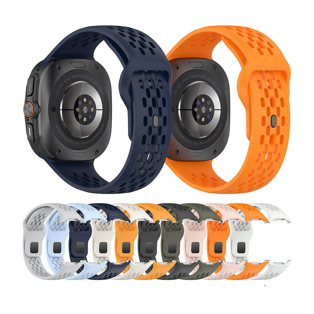 Kordonun delikli tasarımı, sadece estetik açıdan zarif bir görünüm sağlamakla kalmaz, aynı zamanda cihazınızın hava almasını sağlayarak terlemeyi en aza indirir. Bu delikli yapı, özellikle spor yaparken bileğinizin kuru ve rahat kalmasına yardımcı olur. Kordonun renkli seçenekleri, Galaxy Watch Ultra 47mm'nizıi şıklığını artırır ve tarzınıza uyum sağlar.