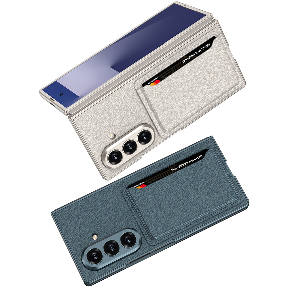 Galaxy Z Fold 7 Suni Deri Arka Yüzey Zore Kartlıklı Kıpta Silikon Kapak Gri