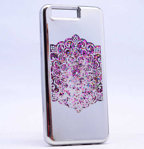 Huawei P10 Plus Kılıf Zore Lazer Çiçekli Sıvılı Silikon Gümüş