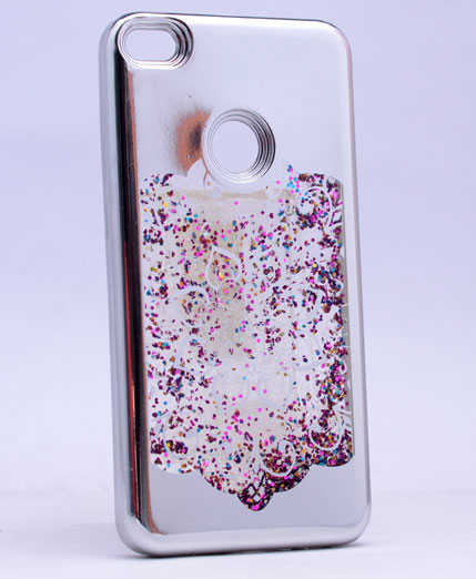 Huawei P9 Lite 2017 Kılıf Zore Lazer Çiçekli Sıvılı Silikon Gümüş