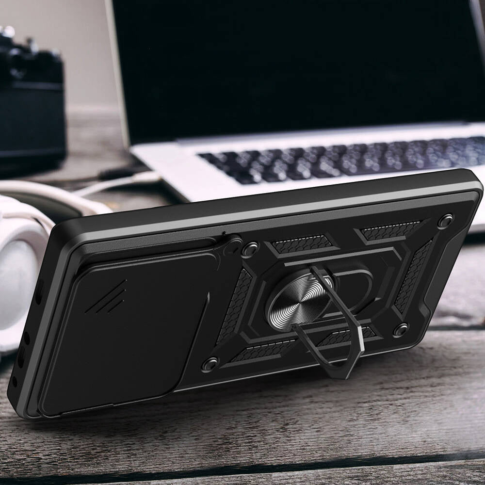Huawei Pura 70 5G Kılıf Magnetik Standlı Kamera Korumalı Zore Sürgülü Vega Kapak Siyah