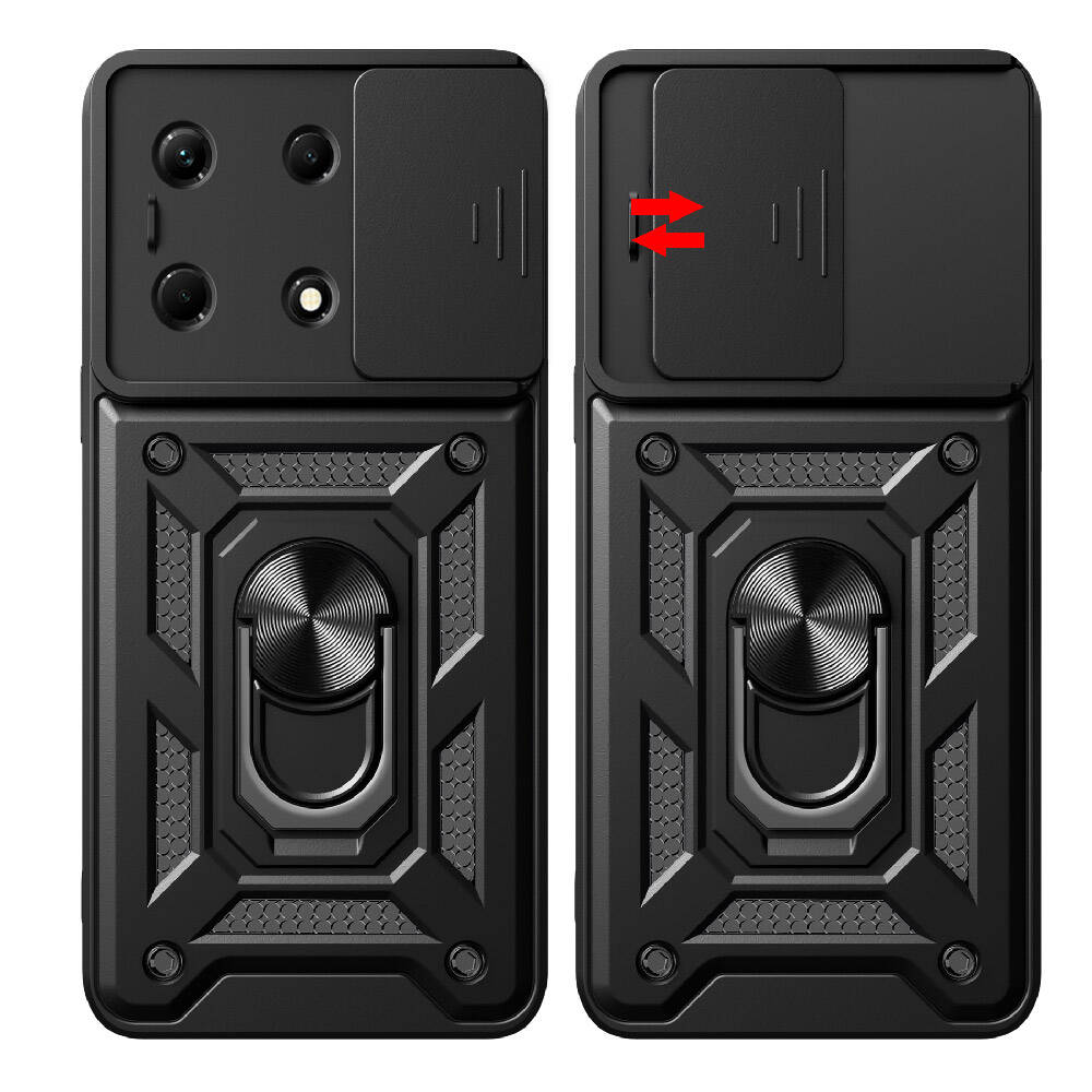 İnfinix Note 30 4G Kılıf Magnetik Standlı Kamera Korumalı Zore Sürgülü Vega Kapak Siyah