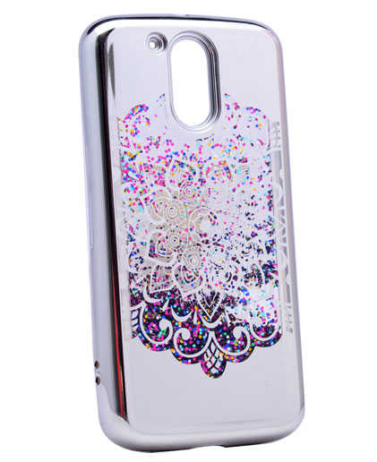 Lenovo Moto G4 Kılıf Zore Lazer Çiçekli Sıvılı Silikon Gümüş