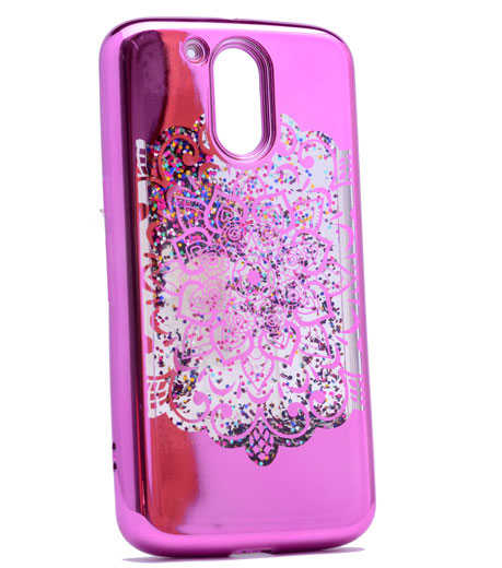 Lenovo Moto G4 Kılıf Zore Lazer Çiçekli Sıvılı Silikon Pembe Açık