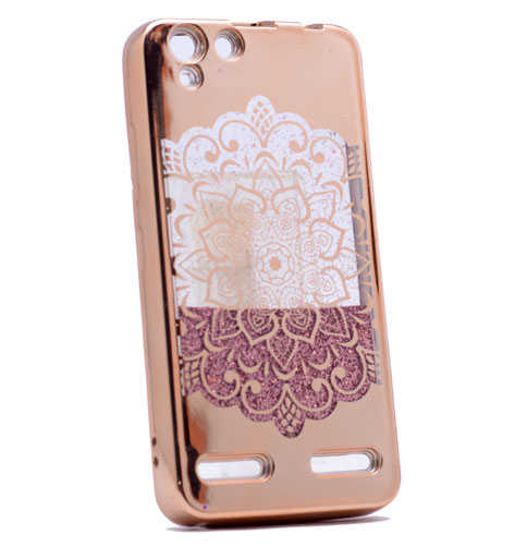 Lenovo Vibe K5 Kılıf Zore Lazer Çiçekli Sıvılı Silikon Gold