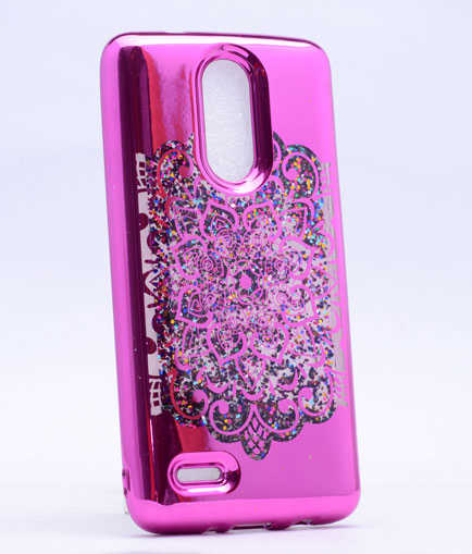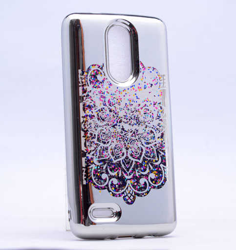 LG K10 2017 Kılıf Zore Lazer Çiçekli Sıvılı Silikon Gümüş