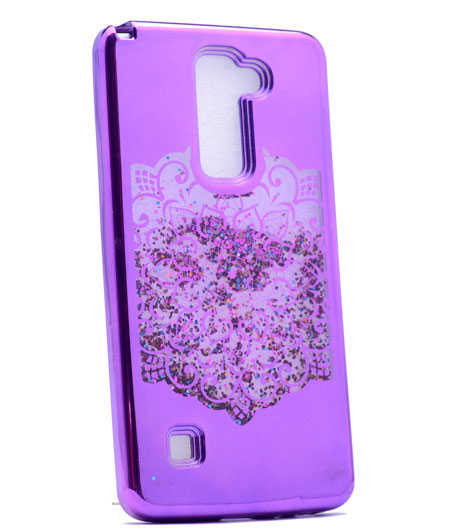 LG Stylus 2 Kılıf Zore Lazer Çiçekli Sıvılı Silikon Mor