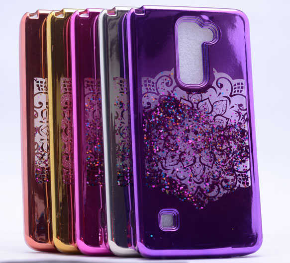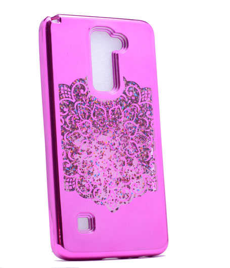 LG Stylus 2 Kılıf Zore Lazer Çiçekli Sıvılı Silikon Pembe Koyu