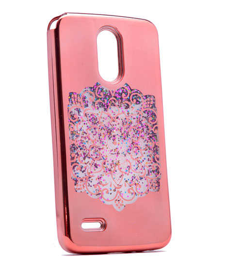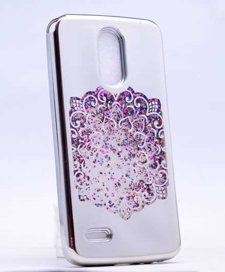 LG Stylus 3 Kılıf Zore Lazer Çiçekli Sıvılı Silikon Gümüş