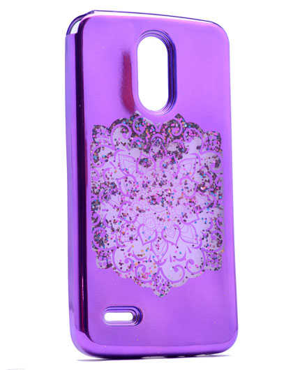 LG Stylus 3 Kılıf Zore Lazer Çiçekli Sıvılı Silikon Mor