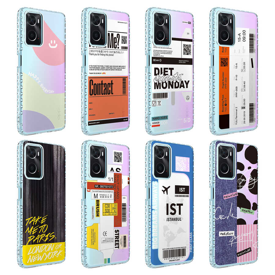 Oppo A96 4G Kılıf Airbag Kenarlı Renkli Desenli Silikon Zore Elegans Kapak NO3