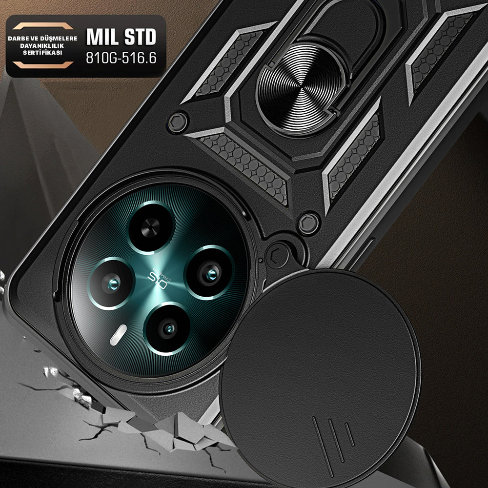 Realme 12 Kılıf Magnetik Standlı Kamera Korumalı Zore Sürgülü Vega Kapak Siyah