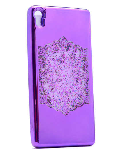 Sony Xperia E5 Kılıf Zore Lazer Çiçekli Sıvılı Silikon Mor