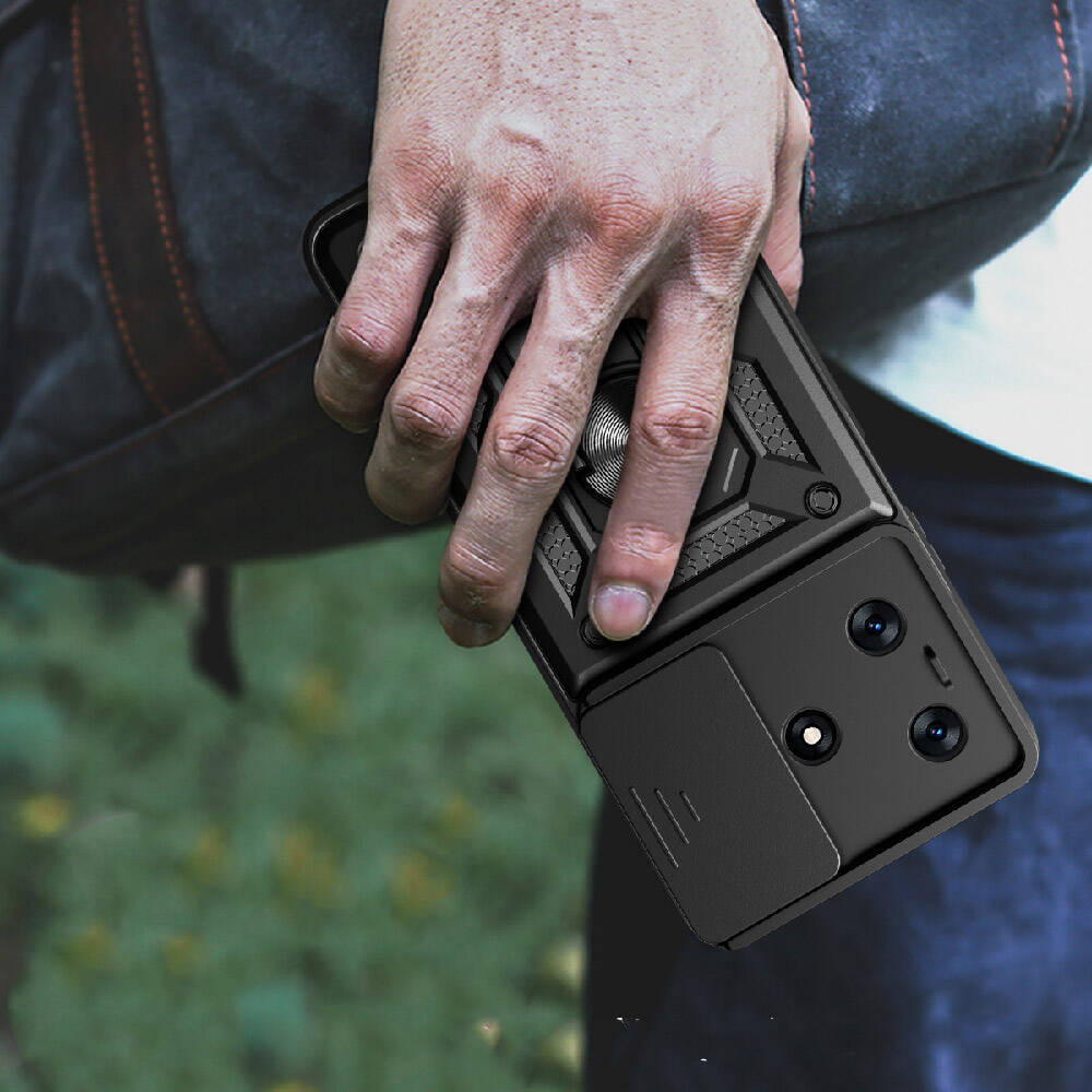 Tecno Spark 10 4G Kılıf Magnetik Standlı Kamera Korumalı Zore Sürgülü Vega Kapak Siyah
