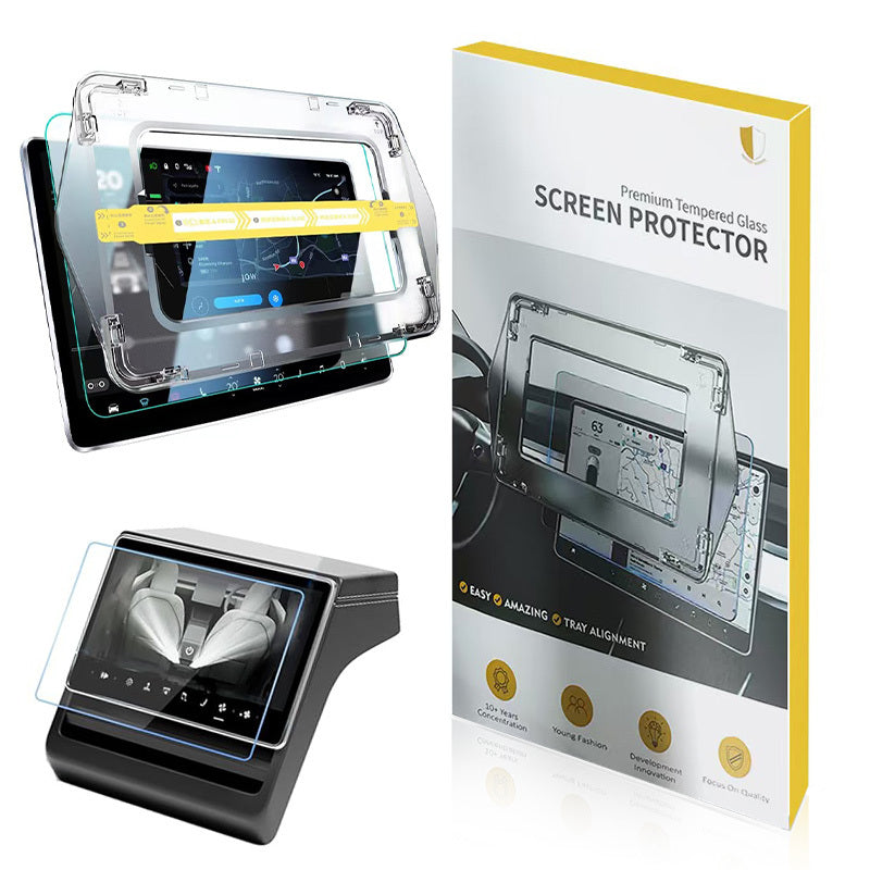 Tesla Yeni Model Y 2in1 Araç Multimedya Ekran Koruyucu Uygulama Aparatlı Zore Premium Temperli Cam Ekran Koruyucu