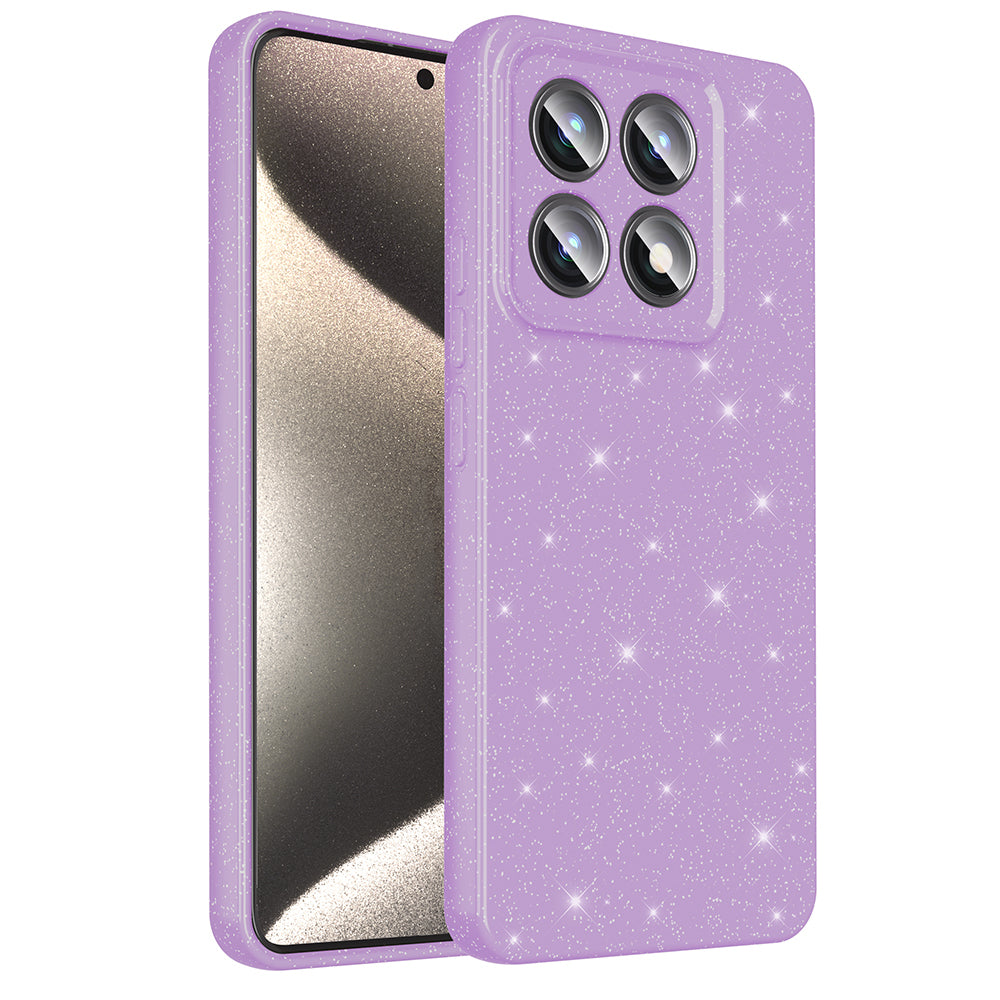 Xiaomi 14T Pro Kılıf Kamera Korumalı Simli Lüks Zore Koton Kapak Lila