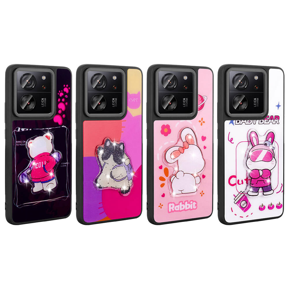 Xiaomi Mi 13T Kılıf Parlayan Kabartmalı İkonik Figürlü Zore Amas Silikon Kapak Pembe