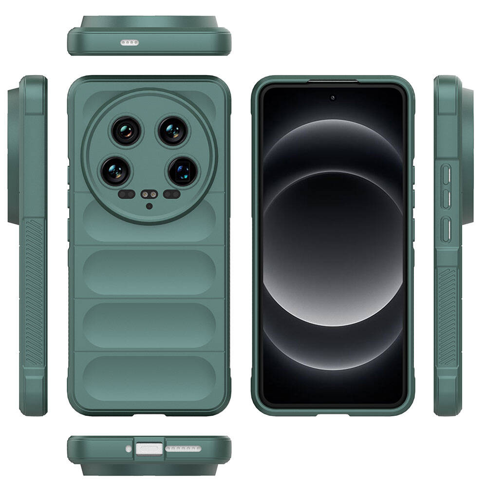 Xiaomi Mi 14 Ultra Kılıf Esnek TPU Oyuklu Arka Yüzey Tasarımlı Zore Etnik Silikon Kapak Koyu Yeşil
