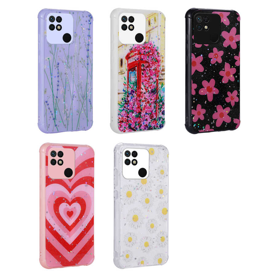 Xiaomi Poco C40 Kılıf Simli Desenli Kamera Korumalı Parlak Zore Popy Kapak Papatya