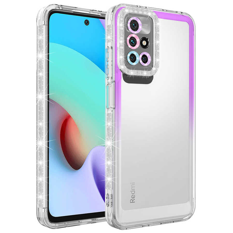 Xiaomi Redmi 10 Kılıf Simli ve Renk Geçiş Tasarımlı Lens Korumalı Zore Park Kapak Mor-Beyaz