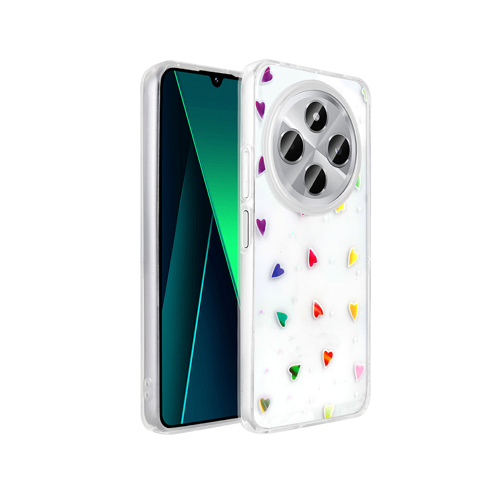 Xiaomi Redmi 14C 4G Kılıf Şeffaf Figürlü Zore Folk Sert Kapak Kalp