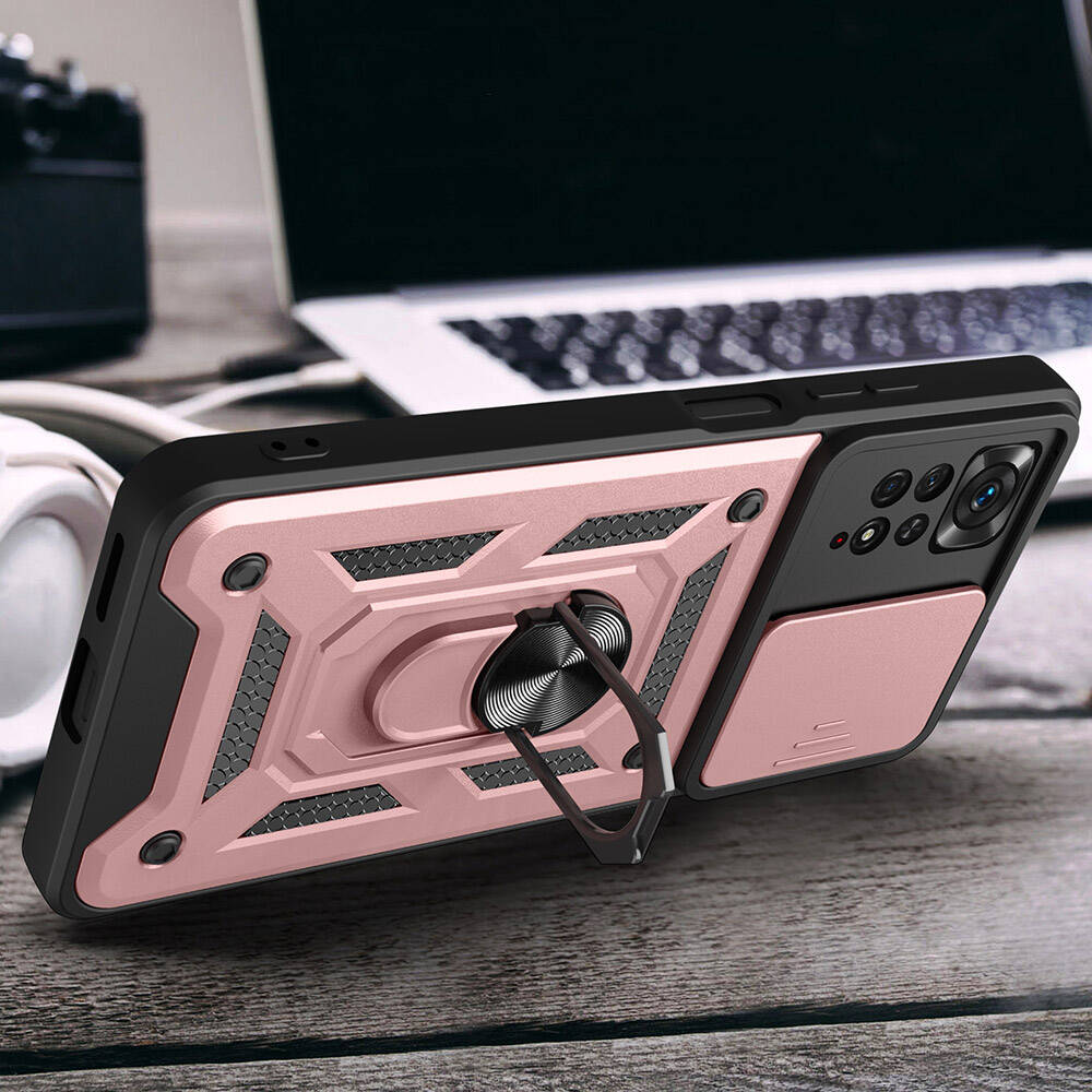 Xiaomi Redmi Note 11 Pro 4G Kılıf Magnetik Standlı Kamera Korumalı Zore Sürgülü Vega Kapak Mavi