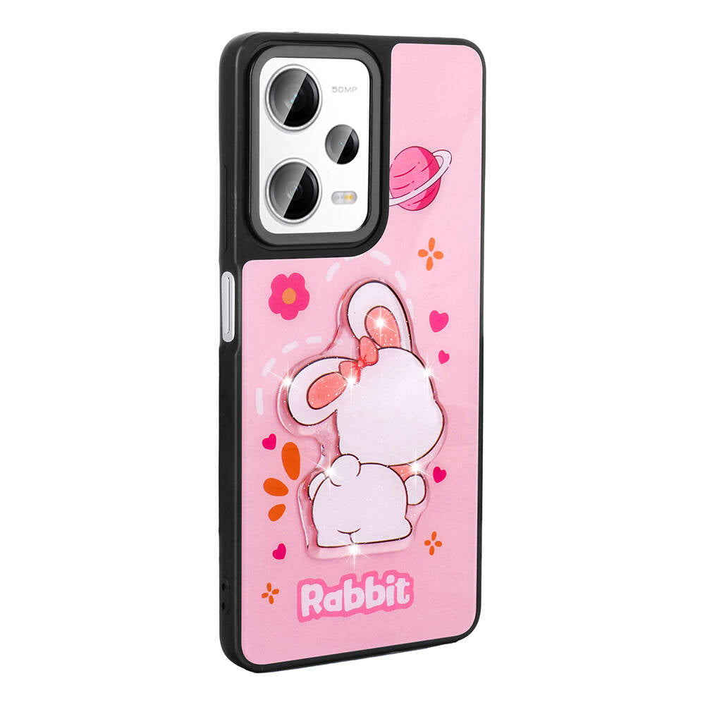 Xiaomi Redmi Note 12 Pro Plus 5G Kılıf Parlayan Kabartmalı İkonik Figürlü Zore Amas Silikon Kapak Pembe