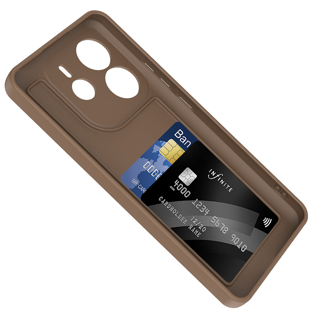Xiaomi Redmi Note 14 4G Kılıf Kamera Korumalı Kartlık Hazneli Zore Vitra Kapak Kahverengi
