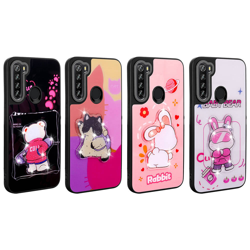 Xiaomi Redmi Note 8 Kılıf Parlayan Kabartmalı İkonik Figürlü Zore Amas Silikon Kapak Siyah