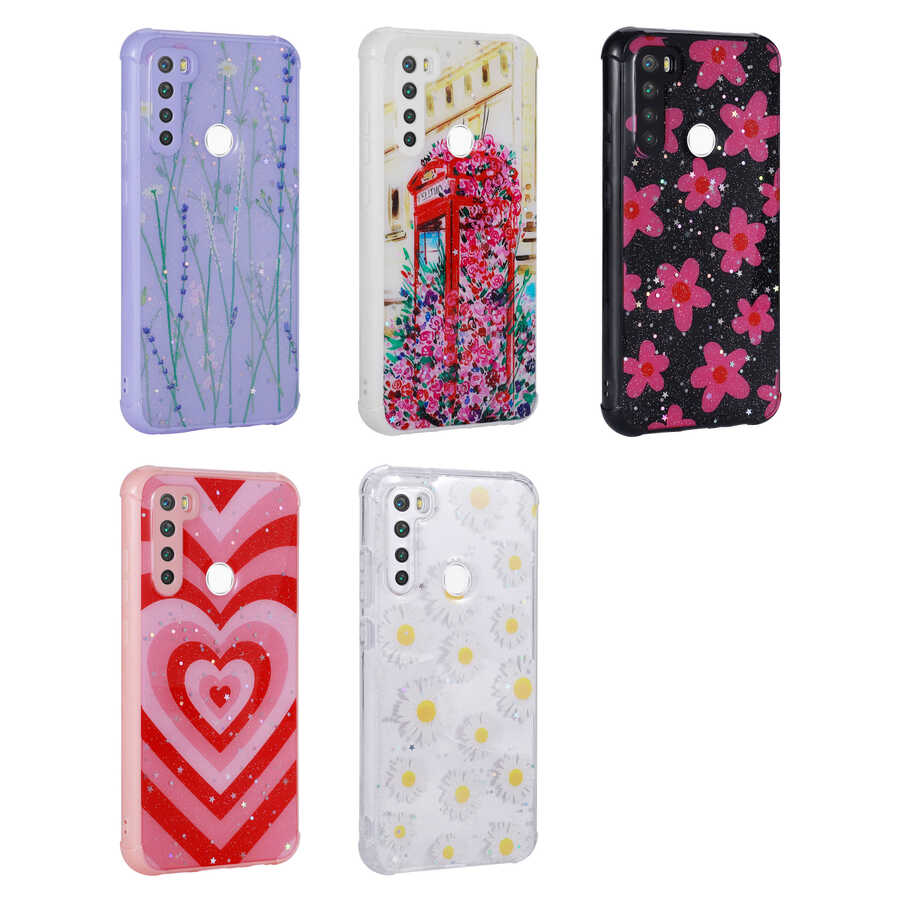 Xiaomi Redmi Note 8 Kılıf Simli Desenli Kamera Korumalı Parlak Zore Popy Kapak Dallar