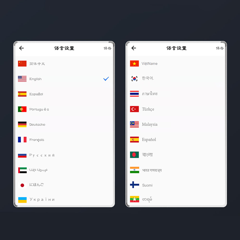 20 farklı dil seçeneği, kolay arayüz ve serbest dil geçişi